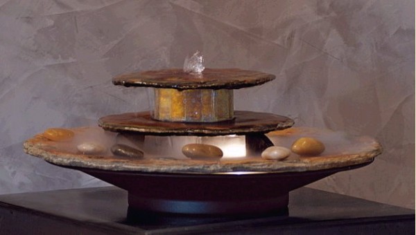 Παλαιό όπως μια πέτρα. Σχιστόλιθος, αυτό το φυσικό υλικό από τα βάθη της γης δημιουργείται και αποκτά το σχήμα του με το πέρασμα εκατομμυρίων χρόνων. Ο σχιστόλιθος χρησιμοποιείται για την κατασκευή των σιντριβανιών σύμφωνα με τους κανόνες του Feng Shui την επιστήμη της αρμονικής συμβίωσης του ανθρώπου με το περιβάλλον. Σύμφωνα με την επιστήμη του Feng Shui, το τρεχούμενο νερό αυξάνει την ενέργεια της ζωής. Κάθε σιντριβάνι αποτελεί μοναδικό κομμάτι, χειροποίητο από υψηλής ποιότητας σχιστόλιθο.