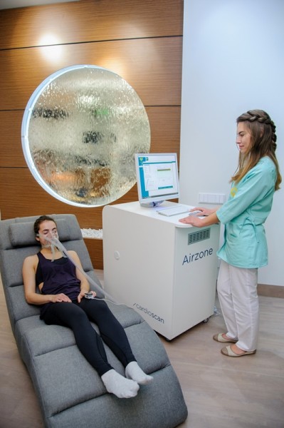 Στο airzone της cardioscan, ο πελάτης χαλαρός και ξαπλωμένος αναπνέει κατά διαστήματα αέρα με περιορισμένο οξυγόνο. Αυτή η τεχνολογία, η οποία προηγουμένως χρησιμοποιείται κυρίως σε αθλήματα υψηλών επιδόσεων, αναφέρεται ως προπόνηση υποξίας. Πρώτον, μια δοκιμή συμβατότητας με το υψόμετρο καθορίζει τον τρόπο με τον οποίο το σώμα αντιδρά στο ερέθισμα. Σε αυτή τη βάση, δημιουργείται ένα μεμονωμένο σχέδιο στο οποίο ο πελάτης ολοκληρώνει το “πρόγραμμα προπόνησης σε υψόμετρο”. Ο αέρας με μειωμένο οξυγόνο δρα στα κύτταρα του ατόμου και οδηγεί σε φαινόμενα προσαρμογής στο σώμα. Το αρνητικό άγχος σας κάνει να σας αρρωσταίνετε. Με το airzone θα έχετε μια καινοτόμο λύση για τη διαχείριση του άγχους.