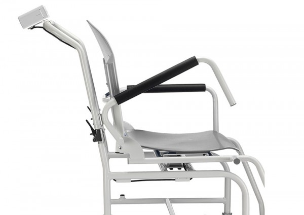 Η τηλεχειριζόμενη οθόνη μπορεί να τοποθετηθεί στο πλάι ή στο πίσω μέρος της καρέκλας, ανάλογα με τις ανάγκες, επιτρέποντας την απλή και ακριβή ζύγιση των ασθενών.