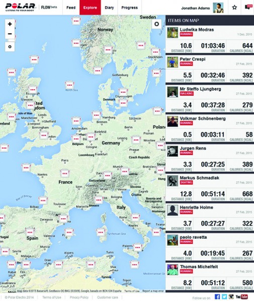Προσωπικός λογαριασμός με username και password στον server της Polar (www.polar.com/flow)