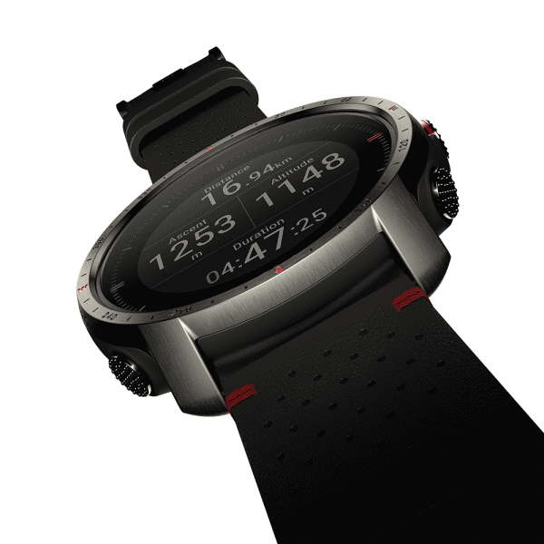 - Μόλις 53 γραμμάρια βάρος στον καρπό σας με διάτρητο δερμάτινο λουράκι (ή 73g με FKM) με πολλαπλές επιλογές εξοικονόμησης ενέργειας, από 40 ώρες μέχρι και 100 ώρες συνεχούς προπόνησης
