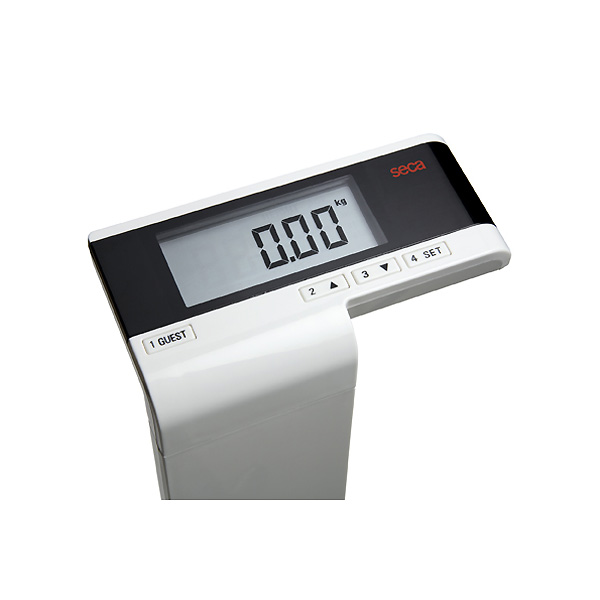 Ευανάγνωστη οθόνη στο ύψος της μέσης: Η οθόνη της seca supra plus 720 έχει ελαφριά κλίση προς τον χρήστη και διαθέτει μεγάλα LCD ψηφία. Αυτό διευκολύνει την ανάγνωση των τιμών του βάρους και της σύστασης και καθιστά το ζύγισμα εύκολο για όλους.